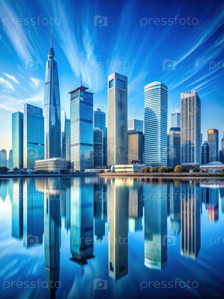 Небоскребы, отражающиеся в голубой воде в ясный день