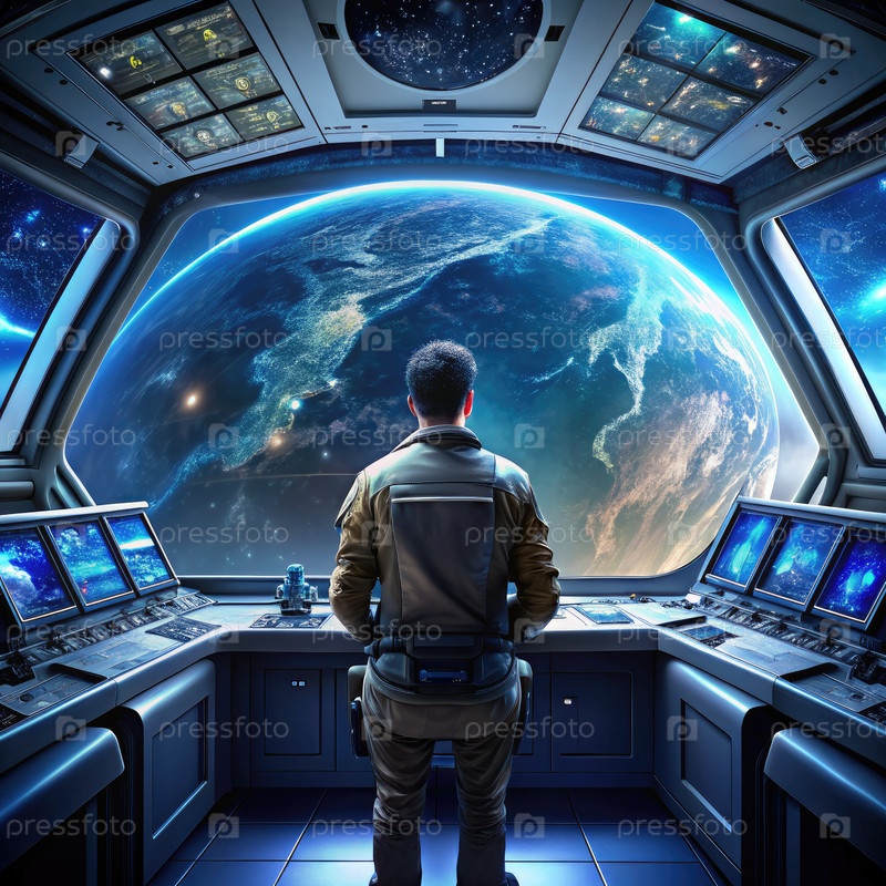 Астронавт наблюдает за Землей из кабины космического корабля