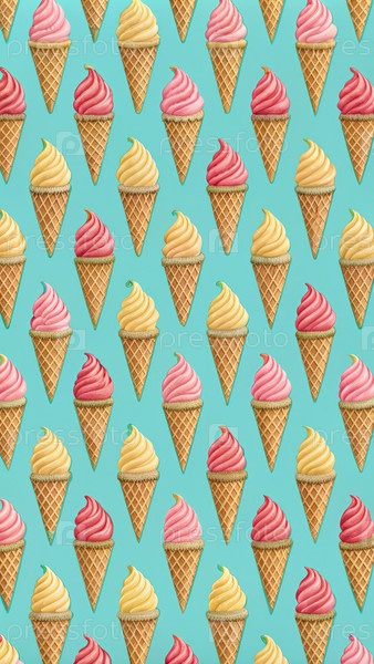 Повторяющийся образец красочных мороженого конусов на бирюзовом фоне