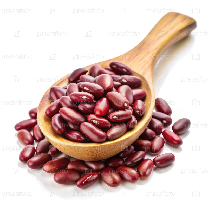 Красные почки в деревянной ложке на белом фоне