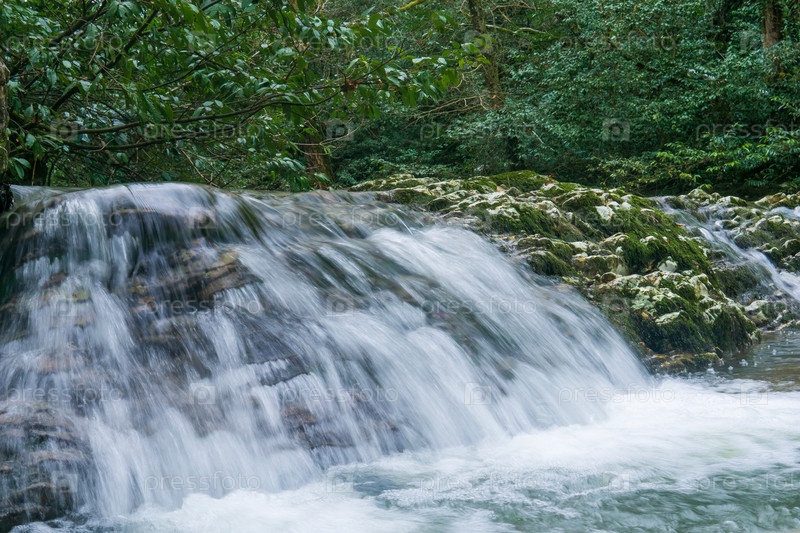 Красивый водопад в лесу. фото с длинной экспозицией и размытым движением