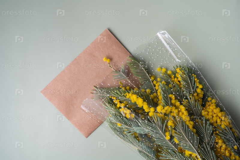 Букет мимоз в полике Dot Wrap with Kraft Envelope