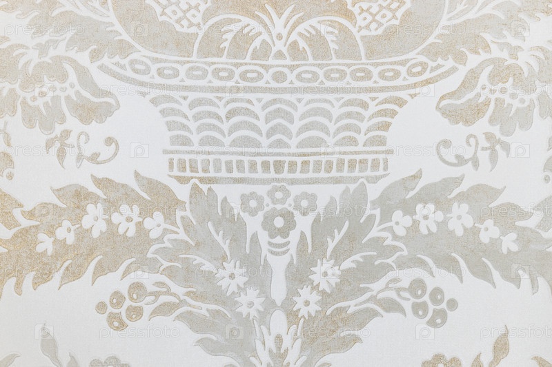 Роскошная и элегантная дамаскская обои с повторяющимся цветочным узором урны в мягких, нейтральных тонах