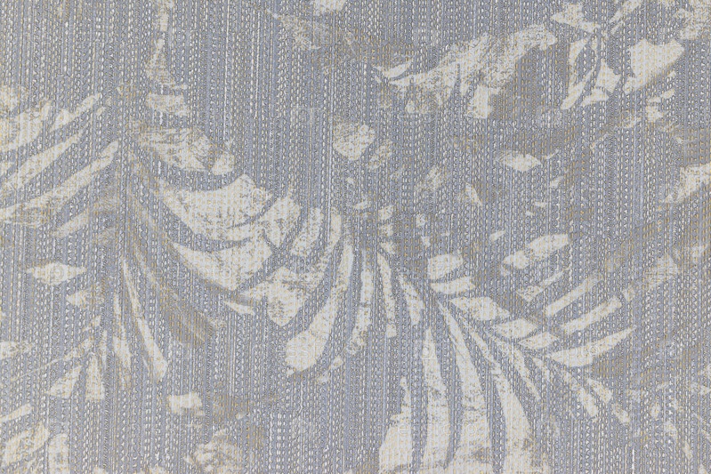 Утонченный серый текстиль с сложным ботаническим узором пальмовых и папоротниковых листьев, предлагающий тонкую текстуру