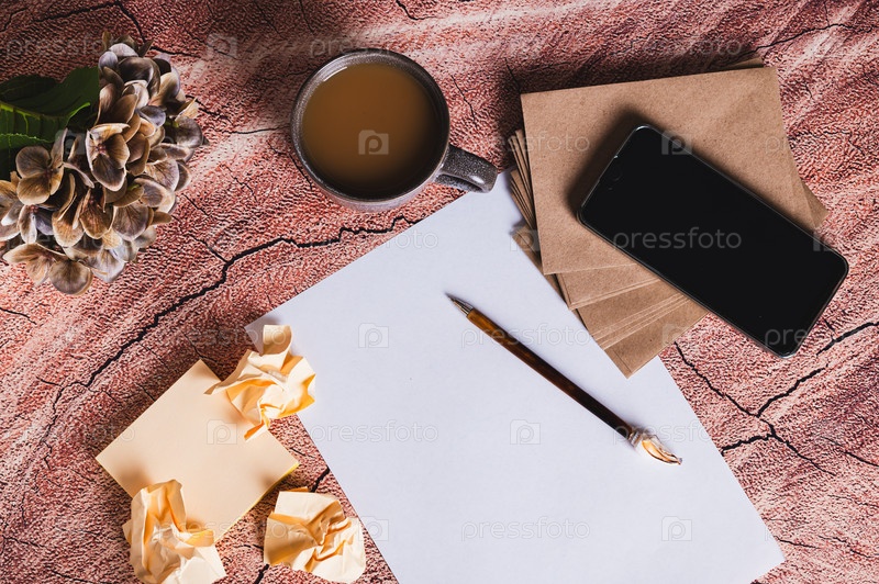 Концепция написания резюме для заявления на работу, бумага и ручка на столе верхний вид