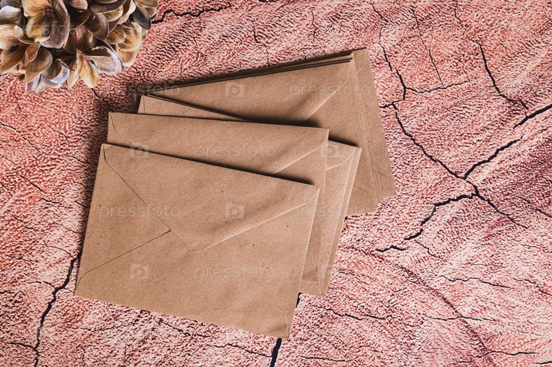 Пустые рукодельные конверты для написания бумажных писем на столе top view