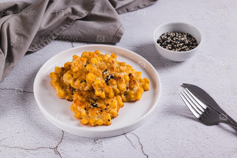 Золотые хрустящие кукурузные фритры на тарелке на столе
