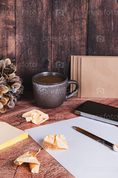 Концепция написания резюме для заявления на работу, бумага и ручка на столе вертикальный вид