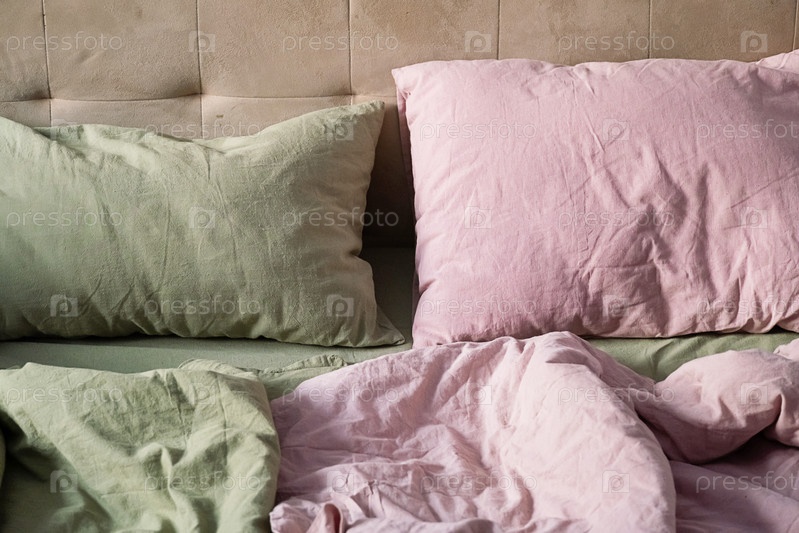 Ближайшее изображение незаготовленной кровати с двумя подушками