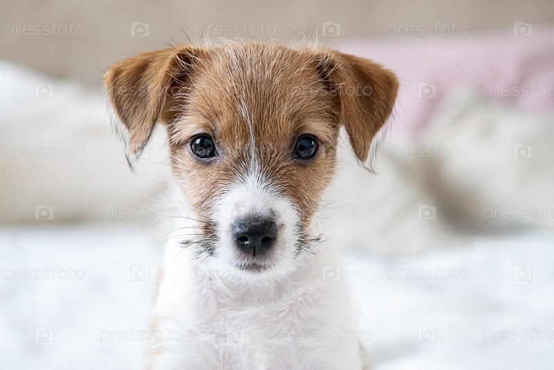 Портрет маленького щенка терьера, смотрящего на камеру с большими глазами