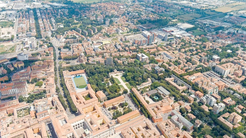 Дюкале ди Модена дворцовый дворец, парк Giardino Ducale Estense исторический центр лето воздушный вид