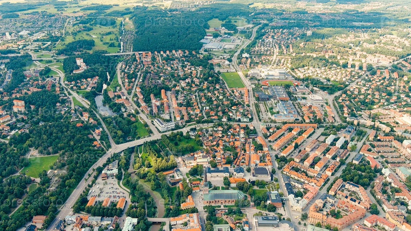 Вастерас, Швеция. Панорама города. Река Свартан (Svartan). Летний день, Aerial View