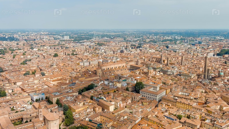 Болонья, Италия.Старый город.Базилика Сан-Петронио, Пьяцца Мажоре.Панорамный вид на город.Летом, Aerial View