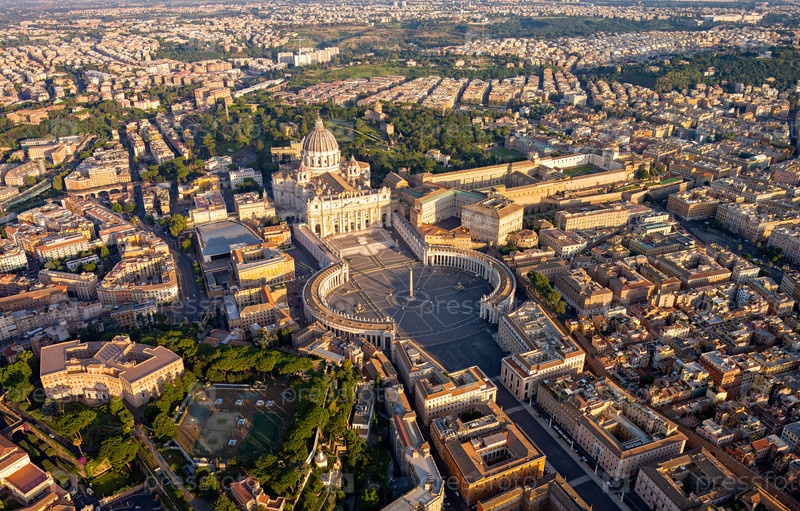 Рим, Италия. собор святого Петра - базилика Сан-Пьетро. панорама города летом утром. солнечная погода. вид с воздуха