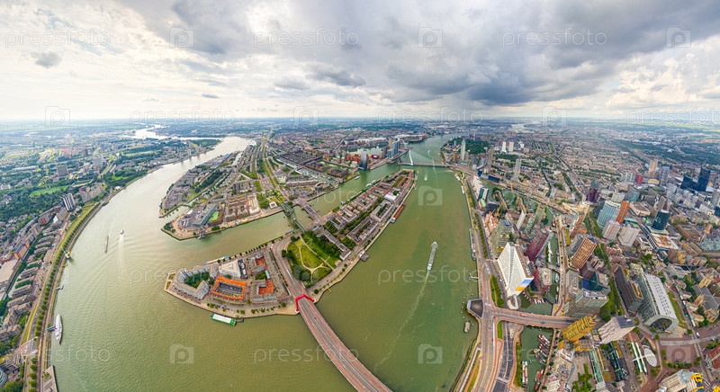 Роттердам, Нидерланды Панорама летнего города в дождливую погоду. Облака. Вид с воздуха