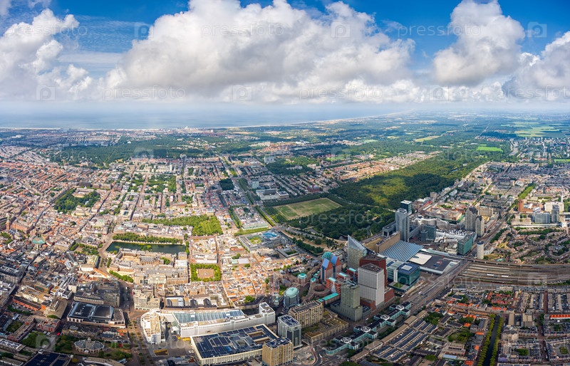 Гаага, Нидерланды.Панорама летнего города в облачной погоде.ГЛАВА ПО СНИМЕ.Вид с воздуха