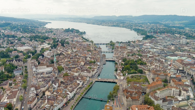 Панорама города с видом на озеро Цюрих Летний день, Aerial View