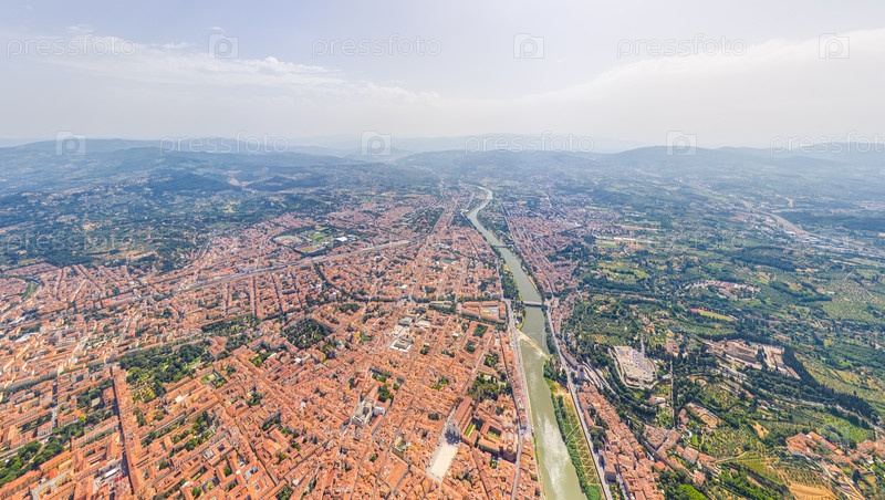 Флоренция, Италия Общий вид города в солнечный день Река Арно Вид с воздуха