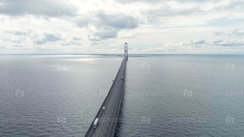 Корсер, Дания.Мост Большого пояса (Storebålt).Облачная погода с пробелами, Aerial View