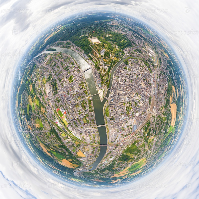 Намур, Бельгия Панорама города Летний день облачная погода 360 градусов панорамный астероид