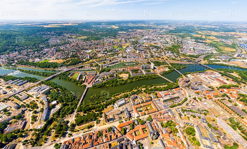 Мец, Франция.Панорама города в летний день.Солнечная погода.Вид с воздуха