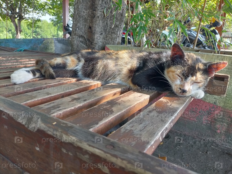 Расслабленная спящая кошка