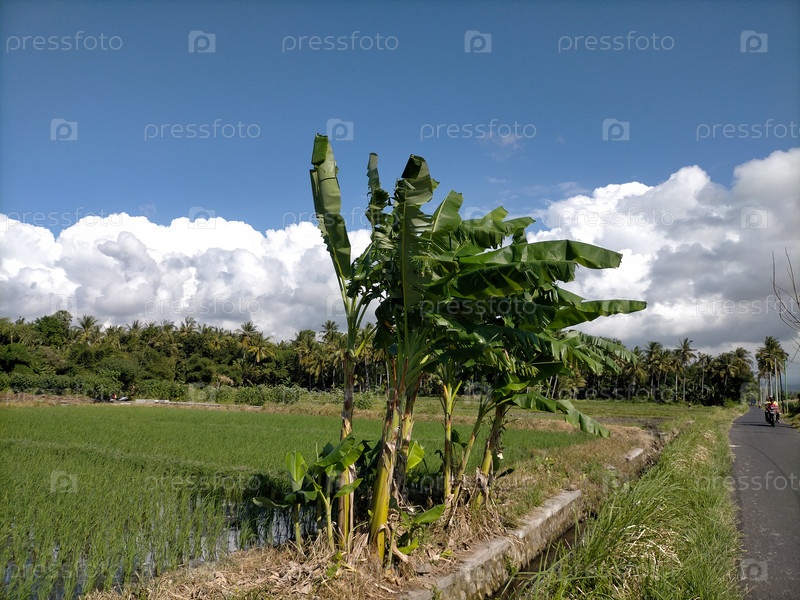 Зеленые поля пальмовые деревья