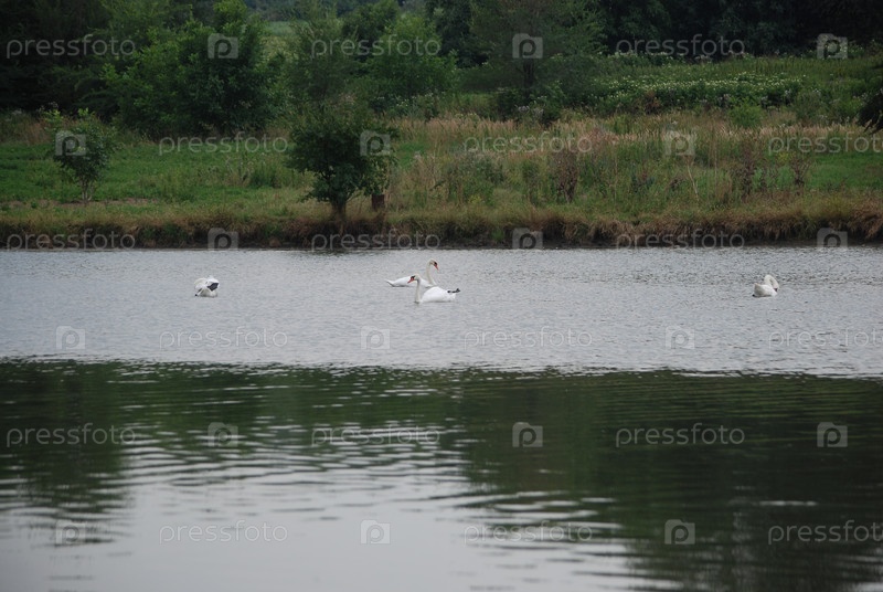 Белые лебеди в пруду
