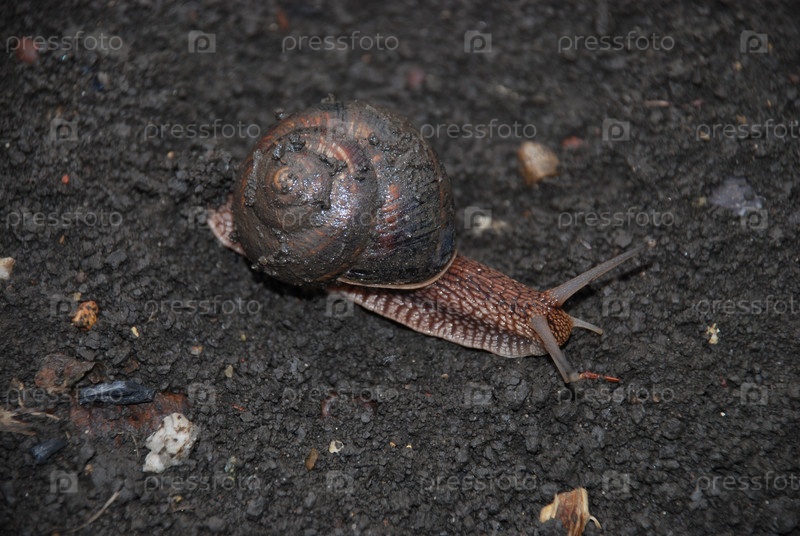 Улитка ползает по земле