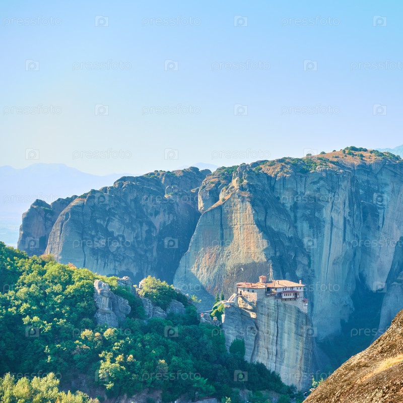 Метеора в Греции с монастырем Русано