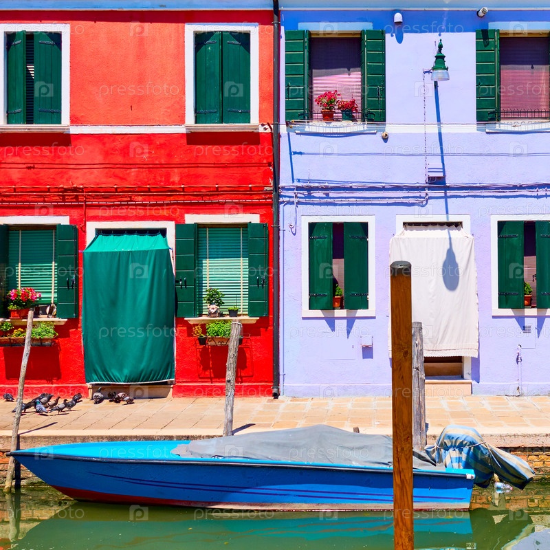 Дома ярких цветов у канала в Бурано