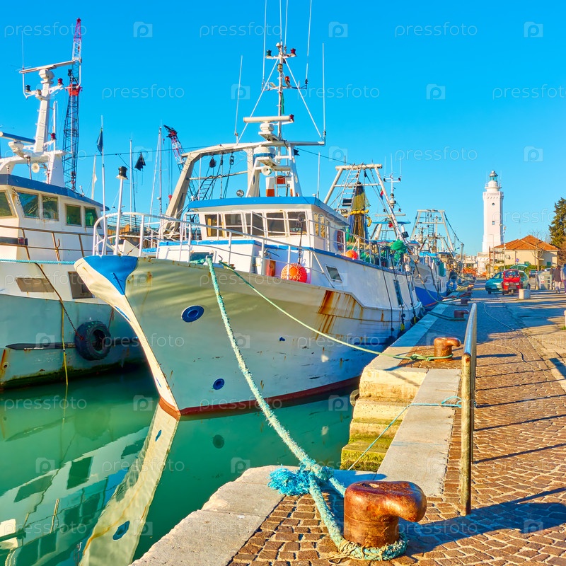 Корабли на канале от маяка в Римини