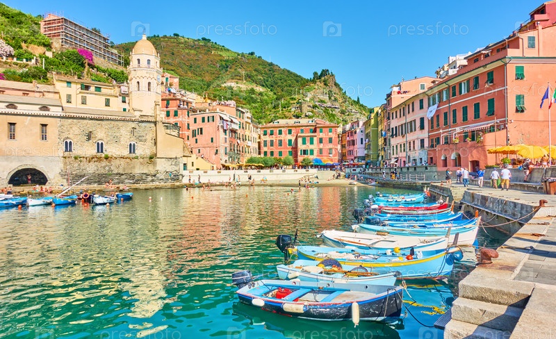 Гавань с лодками и набережной в Вернацце