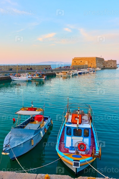 Рыболовные лодки в гавани возле Венецианской крепости в Гераклионе