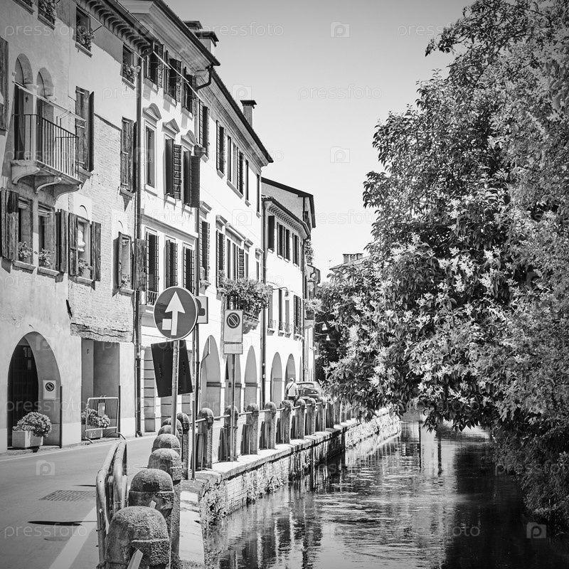 Старая улица вдоль канала в Тревизо