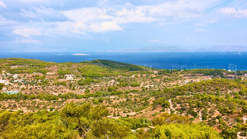 Вид на остров Эгина рядом с Агия-Мариной, Саронские острова, Греция