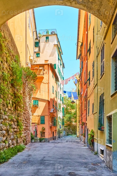 Красочная старая улица в Генуе