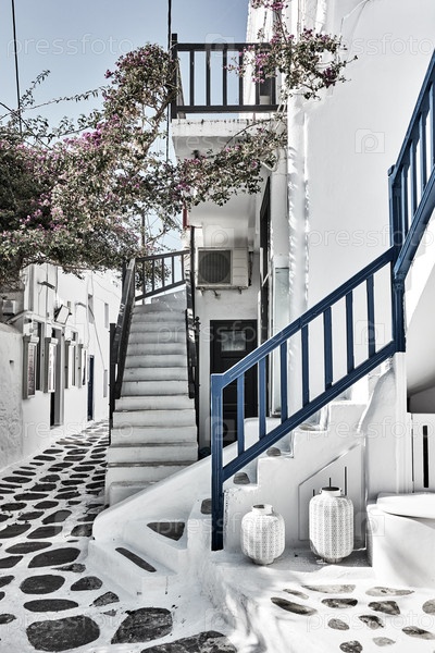 Старая улица с белыми домами на Миконосе