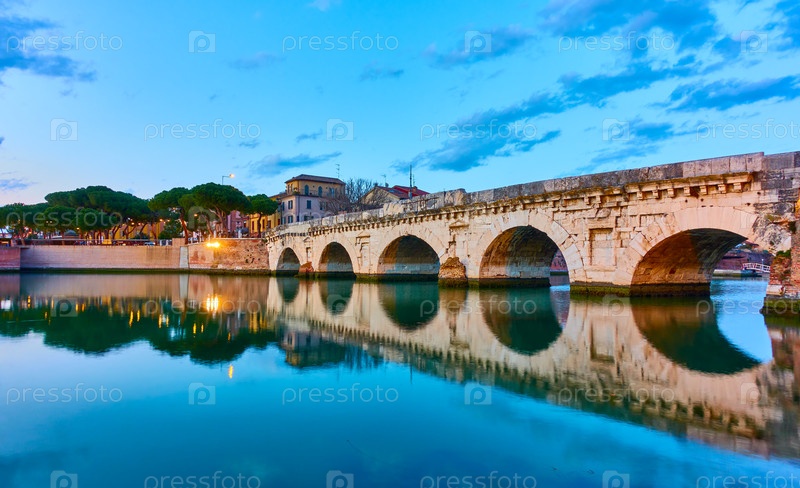 Римини с мостом Тиберия на закате