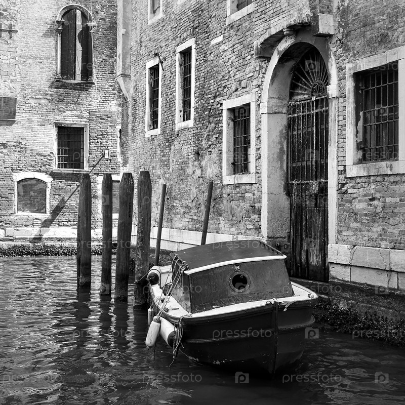 Венецианский боковой канал со старой лодкой