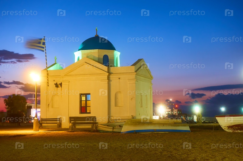 Церковь у моря в Старом порту Миконоса ночью
