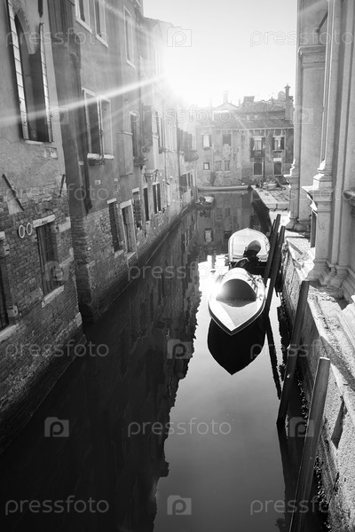 Венецианский канал пришвартовал моторные лодки на летний день