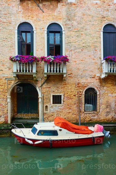 Венецианский канал с моторной лодкой
