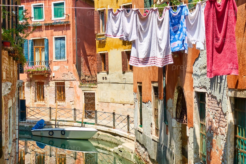 Красочный боковой канал в Венеции