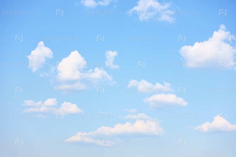 Голубое небо с редкими белыми облаками,