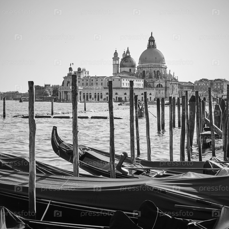 Гондолы и церковь Санта-Мария делла Салуте в Венеции