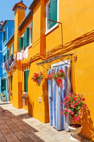 Улица с красочными домами в Бурано, Венеция