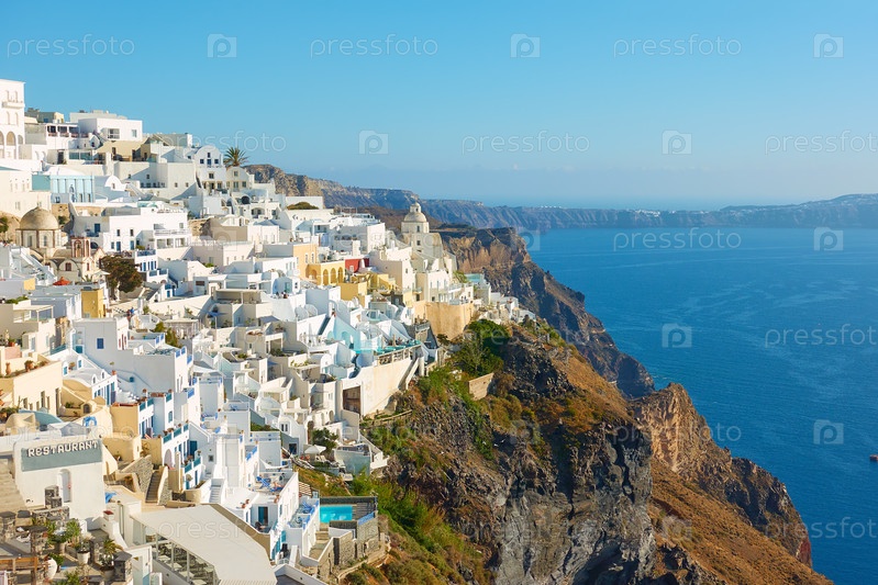 Город Фира на побережье Санторини в Греции