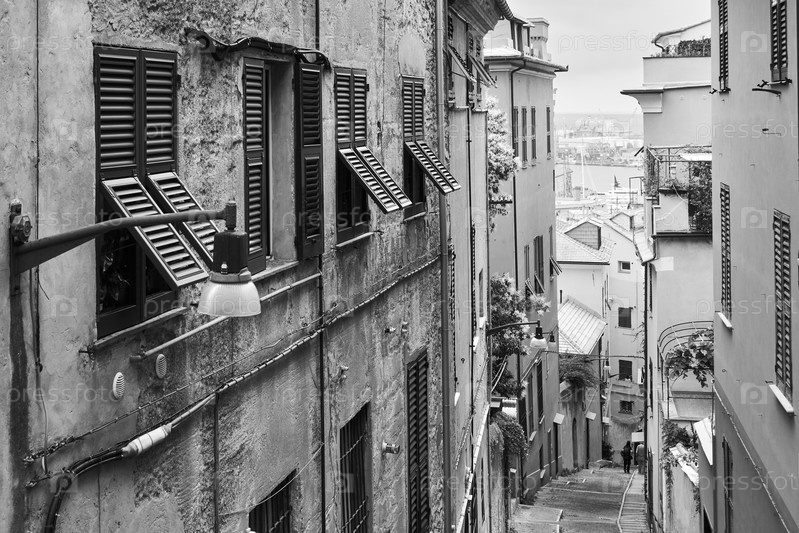 Старая спускающаяся улица в Генуе