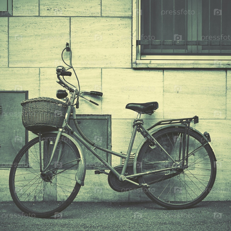 Старый велосипед на улице возле стены